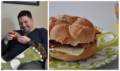 It also gave us time to have breakfast together, just the two of us. I found a blog that had these yummy breakfast sandwiches and knew immediately that's what I would make for Alex on Christmas morning. They had a fried egg, crispy bacon, and pepper jack cheese on a kaiser roll. I had one too and added tomato...they were so good! I ended up making up several and freezing them. Alex has taken one to work every day this week. We also opened our stockings while waiting on Amelia to wake up. We don't really do big gifts for each other, so it's always fun to fill the other's stocking with anything from gift cards to candy.